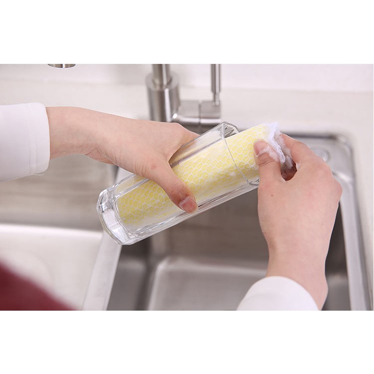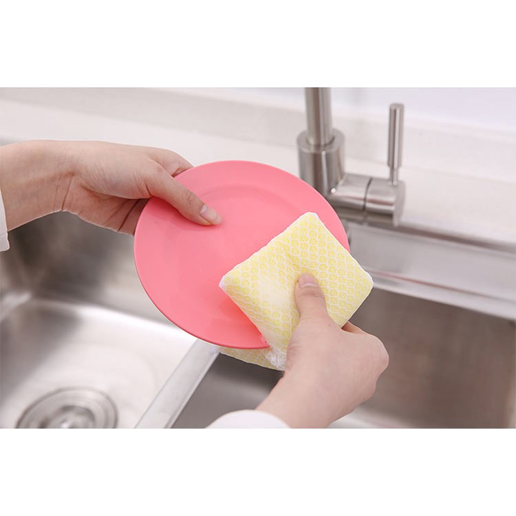 - Ưu điểm là thấm hút tốt, tiết kiệm nước rửa chén tuy nhiên do bề mặt mềm nên những vết bẩn cứng đầu thì hơi khó làm sạch.