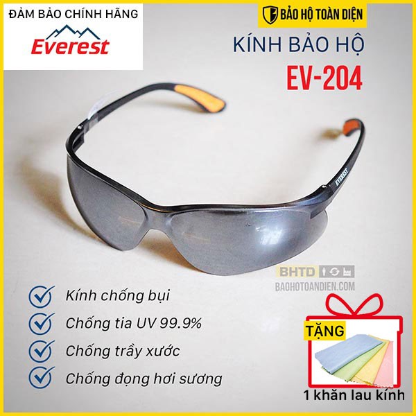 (RẺ) [TẶNG KHĂN LAU KÍNH] Kính bảo hộ Everest EV204. Kính chống bụi, chống chói, cản gió, chống trầy, tia UV.
