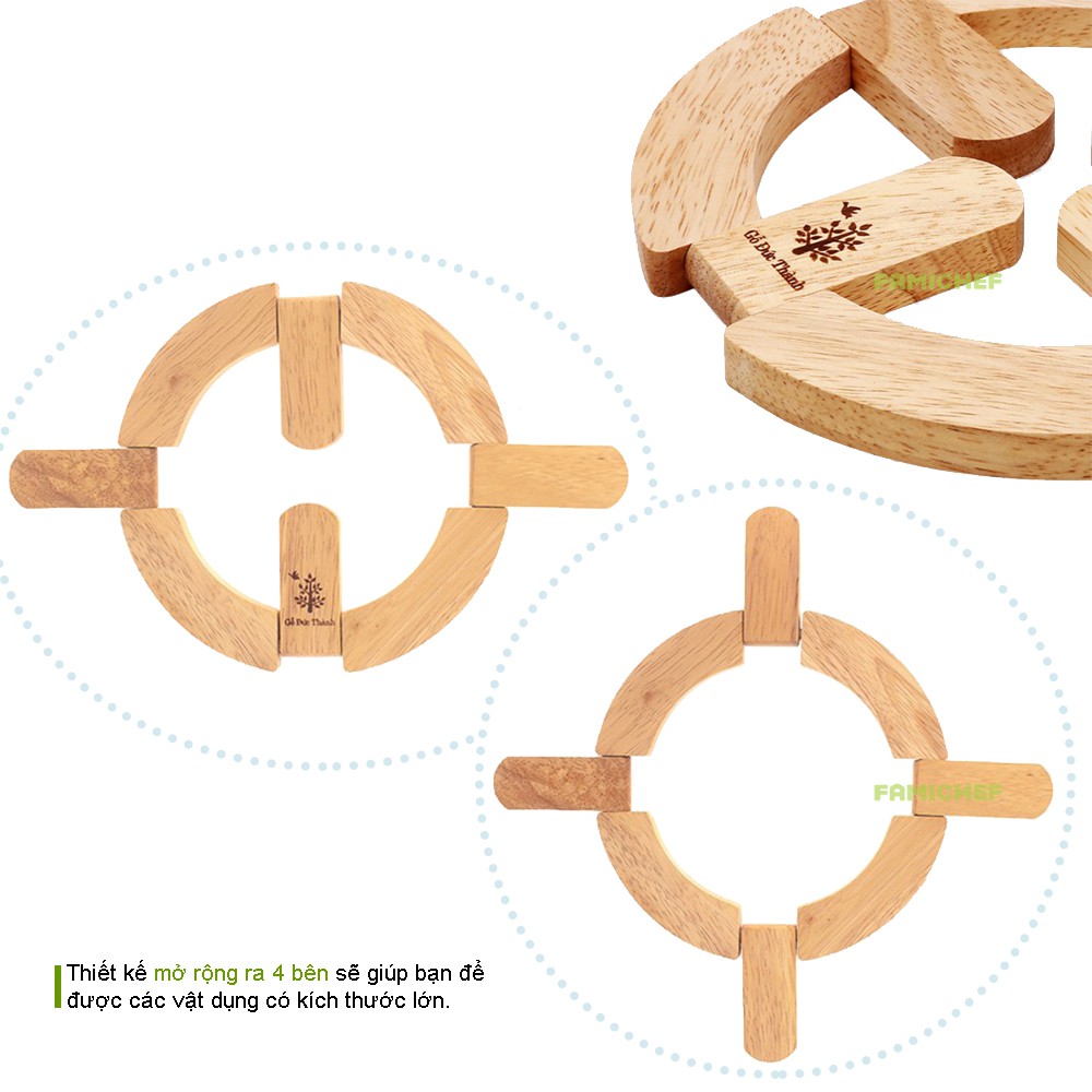 Rế gỗ lót nồi tròn mở rộng Gỗ Đức Thành - Rế tròn mở rộng Đức Thành 09731" GỖ SẠCH BẢO VỆ BỮA ĂN GIA ĐÌNH "
