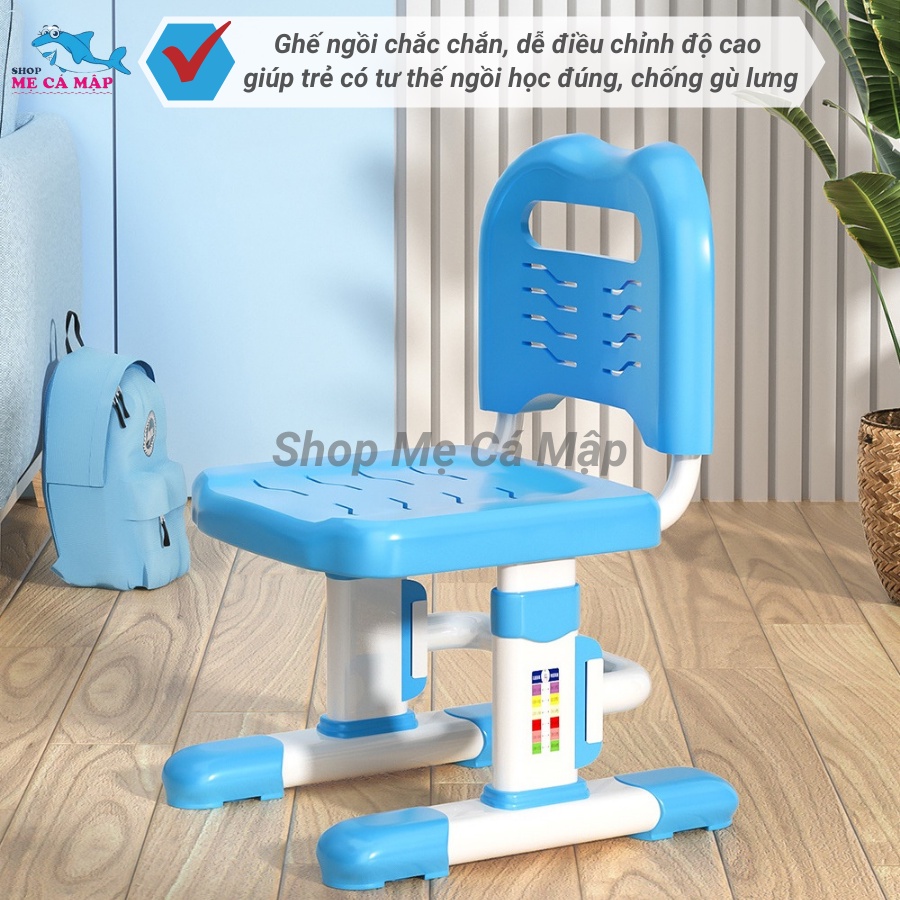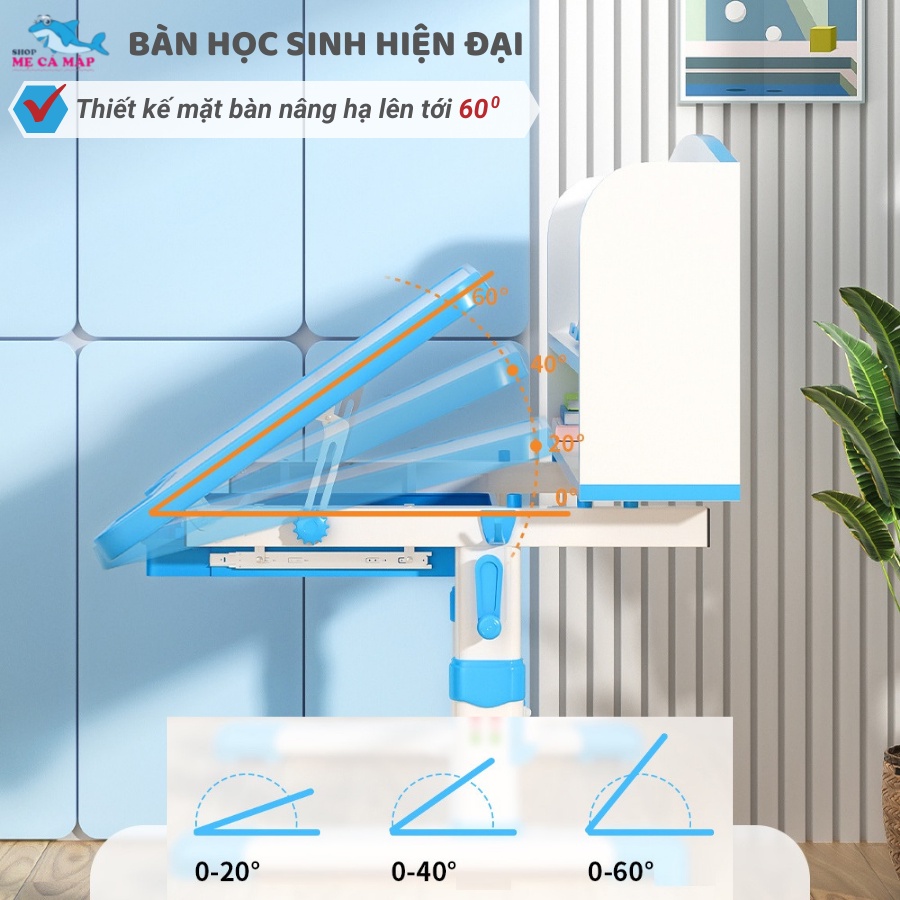 BỘ BÀN GHẾ HỌC SINH CÓ GIÁ SÁCH - BÀN HỌC CHỐNG GÙ CHỐNG CẬN MẪU MỚI NHẤT 2021KÈM 1 GHẾ NÂNG HẠ + CHỐNG CẰM + GIÁ KẸP SÁCH CHO BÉ