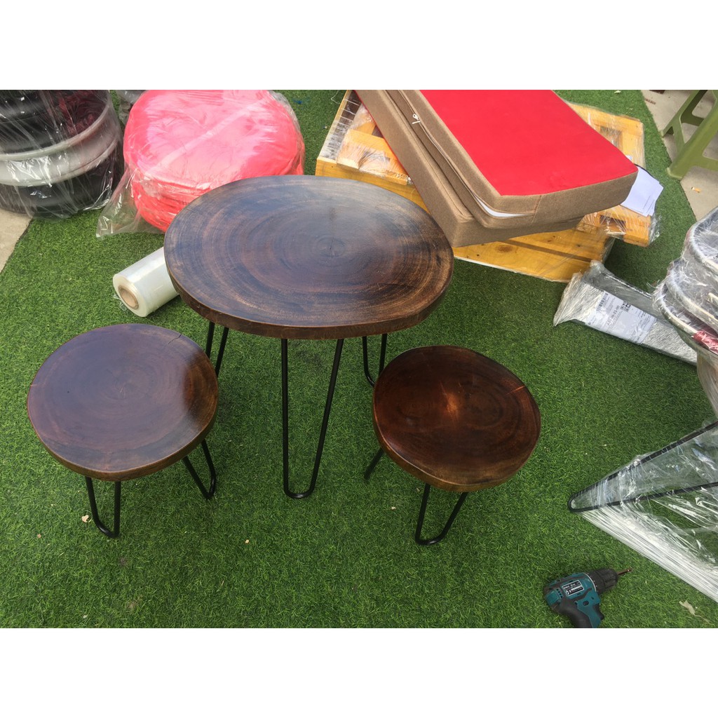 Rẻ Vô Địch Bàn quán cafe gỗ xà cừ| Bàn trà Decor ban công gỗ xà cừ - Chân hairpin cao 60 - 72cm Tổng