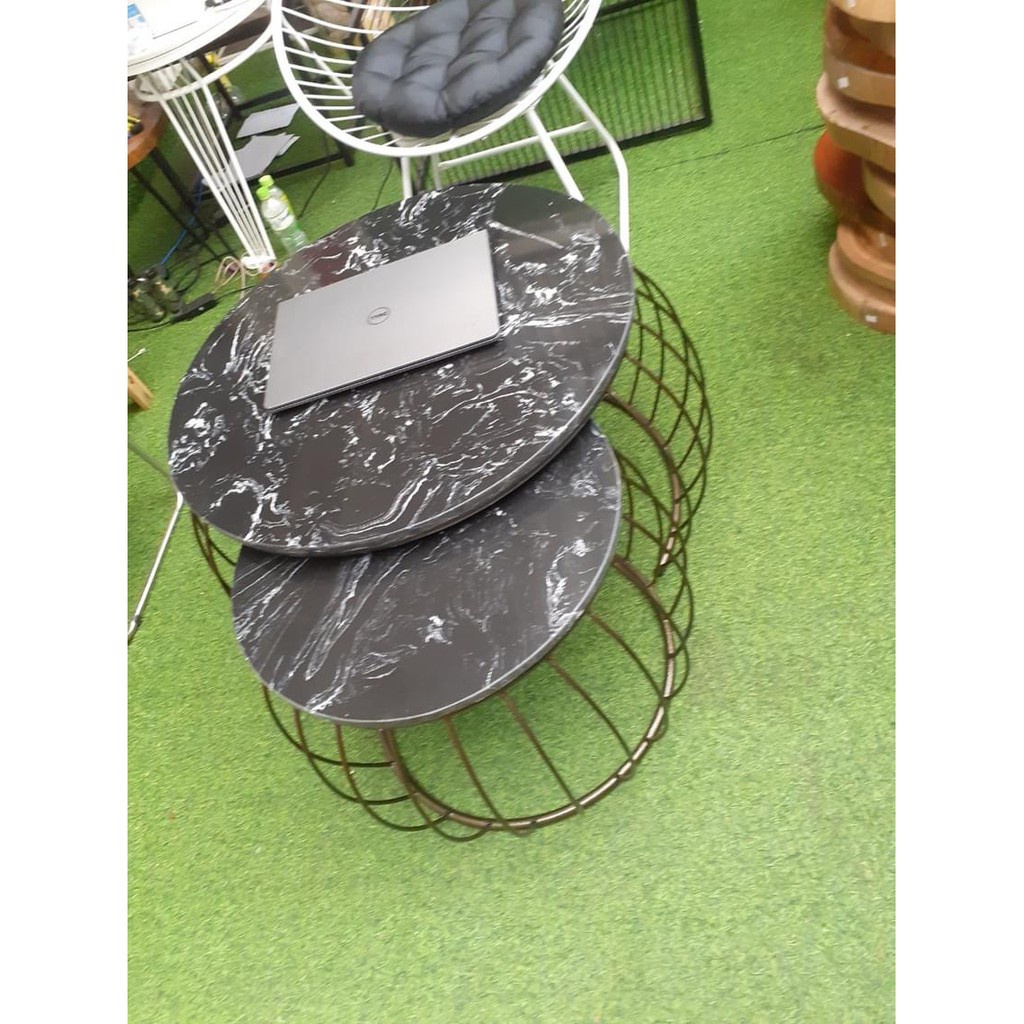 Giới thiệu [Rẻ vô địch] Bàn Trà Sofa - HPBTSF 03 ( Bàn cặp tròn nan cong ) - Bàn sofa mặt đá HP Decor