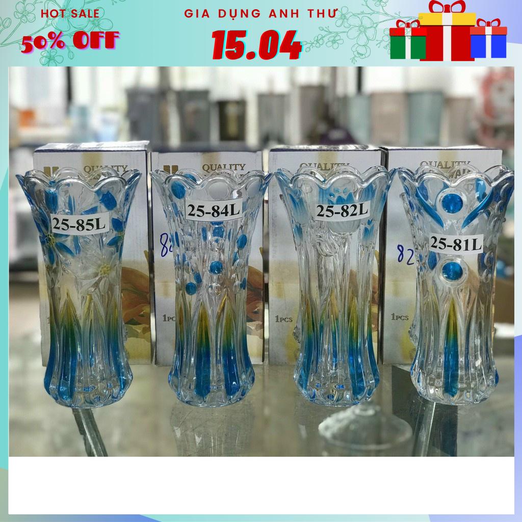 Bình bông lọ hoa thủy tinh size 25cm màu sắc đủ màu .Bình bông lọ hoa thủy tinh được sản xuất dựa trên công nghệ hiện đại với chất liệu thủy tinh cao cấp nên có độ trong suốt có in nhiều màu sắc đẹp mắt. Bình rất dễ dàng vệ sinh, khó trầy xước và an toàn sử dụng cho mọi nhà. Bình bông lọ hoa thủy tinh có dáng cổ điển miệng bình toa đáy bình cực dày thủy tinh tạo cho bình nặng hơn về đáy khó đổ vỡ khi bạn cắm hoa có chiều cao . đơn giản với các đường nét được thực hiện tinh tế, sắc sảo.