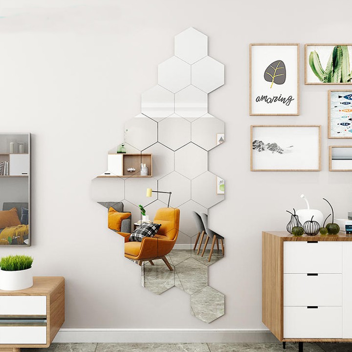 Nhà cửa & Đời sống > Trang trí nhà cửa > Gương || [RẺ VÔ ĐỊCH] Bộ 12 miếng gương dán tường 3D hình lục giác Trang TríCòn hàng