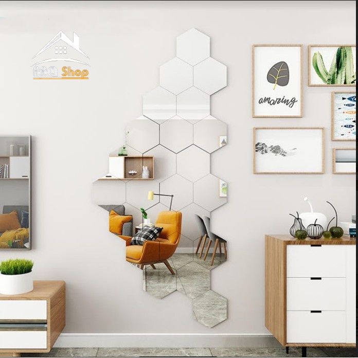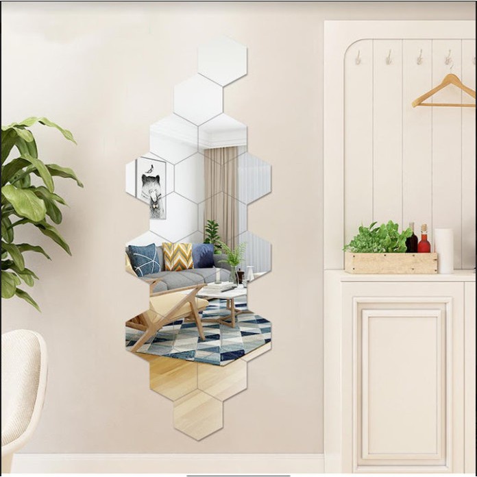 Nhà cửa & Đời sống > Trang trí nhà cửa > Gương || [RẺ VÔ ĐỊCH] Bộ 12 miếng gương dán tường 3D hình lục giácCòn hàng