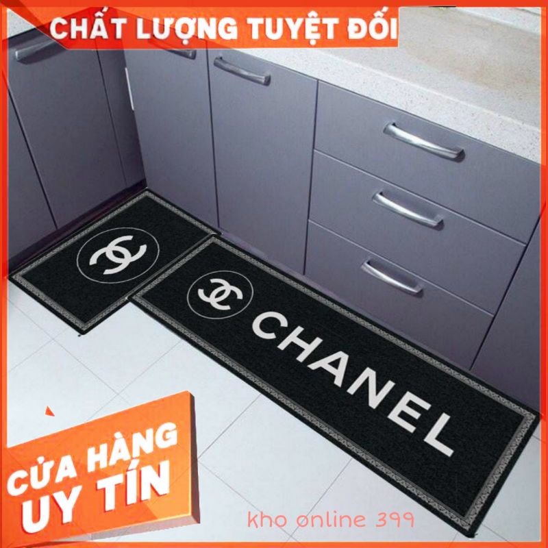 [RẺ VÔ ĐỊCH] bộ 2 thảm bếp Chanel nỉ nhung chống trượt thấm hút tốt, trang trí nhà cửa với thảm chùi chân thương hiệu
