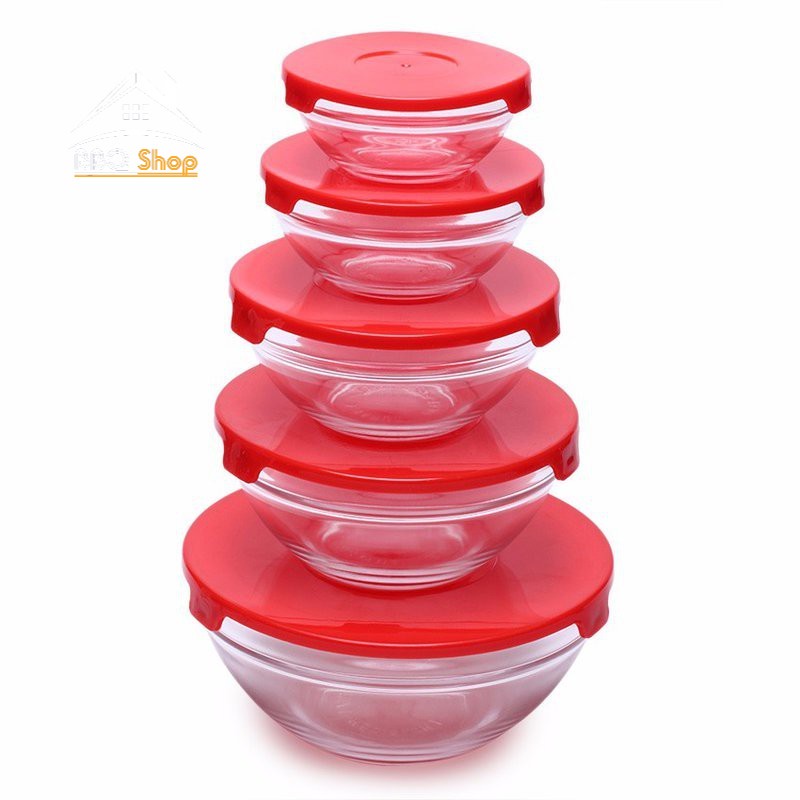 Giới thiệu [RẺ VÔ ĐỊCH] Bộ 5 bát thuỷ tinh đẹp có nắp đậy