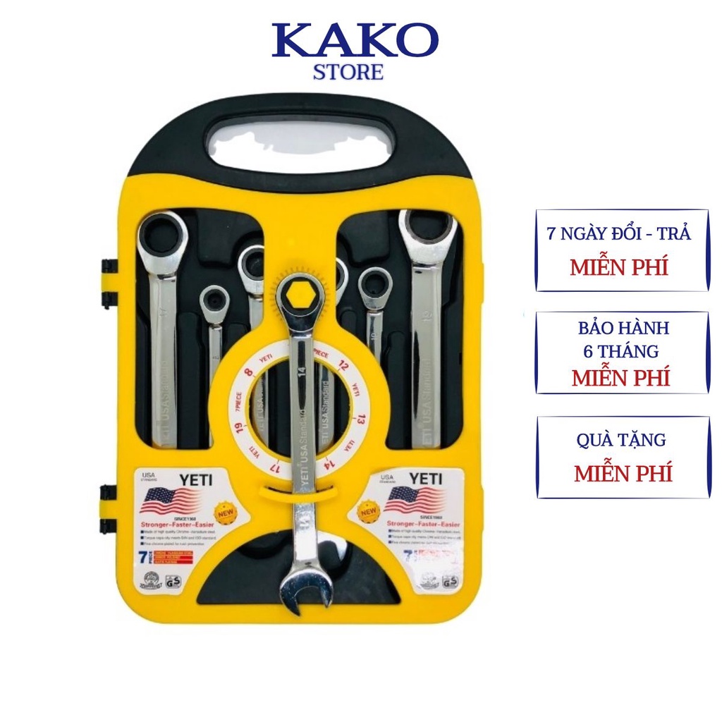 (RẺ VÔ ĐỊCH) Bộ cờ lê vòng miệng Kako, Bộ 7 cle tự động đa năng yeti , sinomax từ 8-19mm