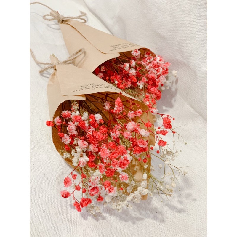 Bó hoa khô Baby hai màu đỏ và trắng
