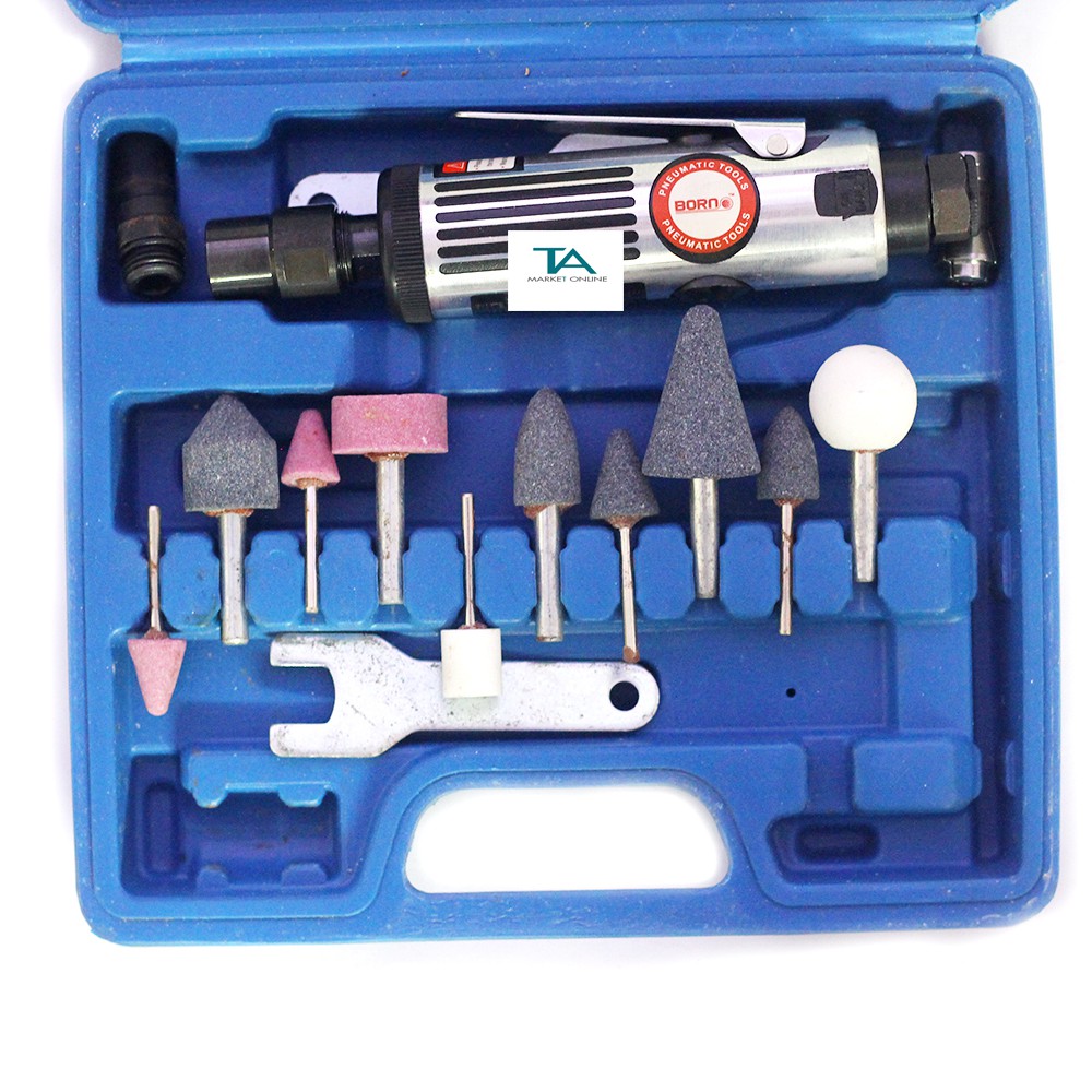 Khi mua bộ sản phẩm máy mài hơi mini bạn sẽ được sở hữu ngay: máy mài hơi cầm tay, đá mài, cờ lê ... thích hợp cho các bác thợ sửa chữa, chế tác ...