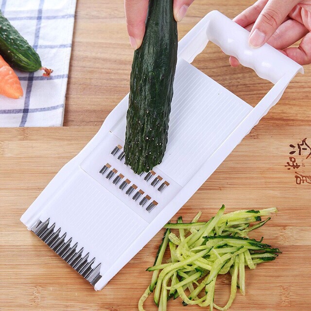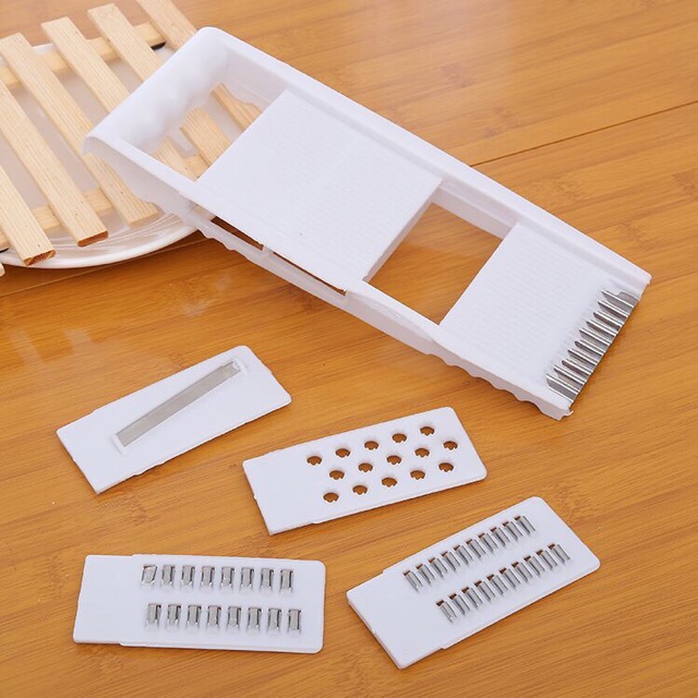 - Đi kèm là 4 lưỡi dao thông dụng nhất, tạo hình cho các món ăn thêm hấp dẫn gồm 1 dụng cụ bào lát mỏng, 1 dụng cụ bào sợi lớn và nhỏ, 1 dụng cụ bào nhuyễn