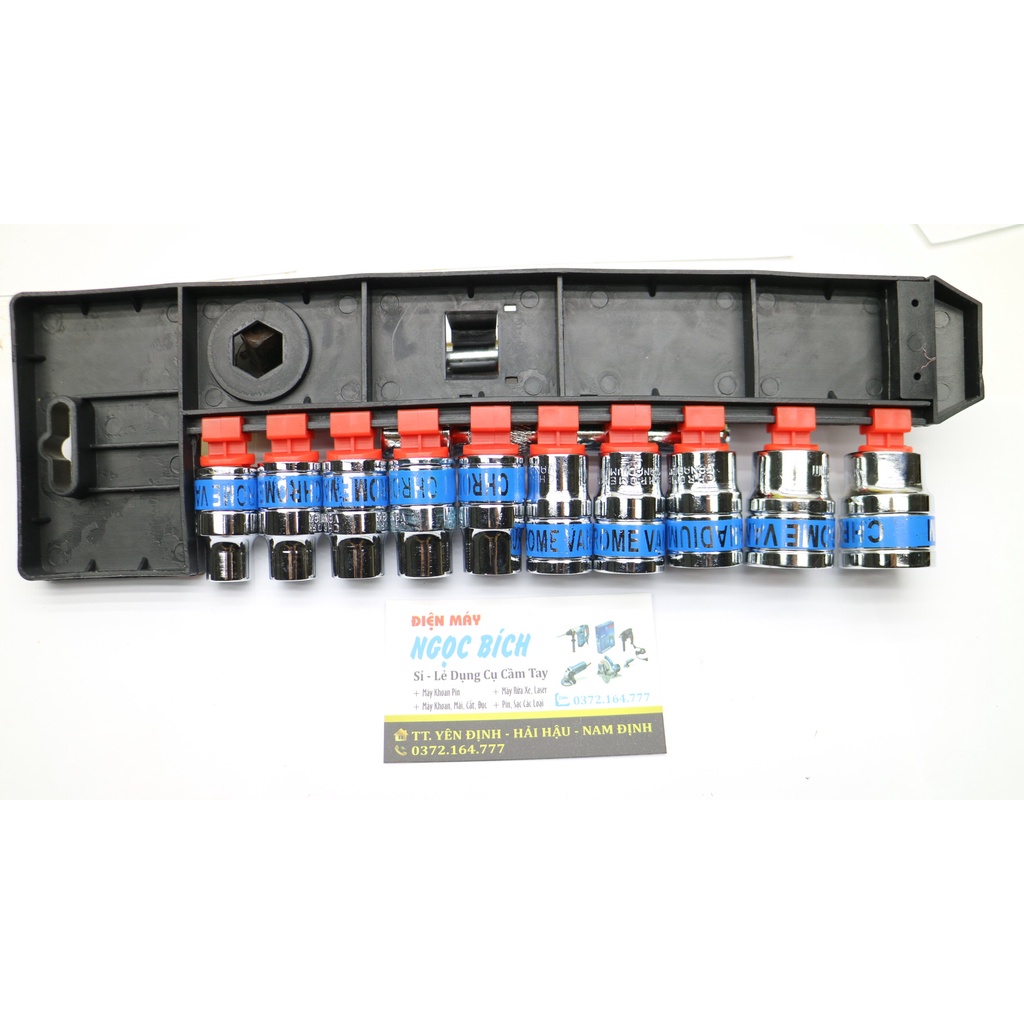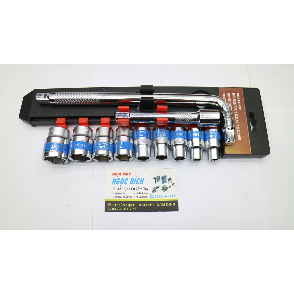 Bộ tuýp 11 chi tiết 1/2- Gồm: 9 đầu tuýp 1/2 inch (12.7mm): 8 10, 12, 13, 14, 17, 19, 22, 24mm.