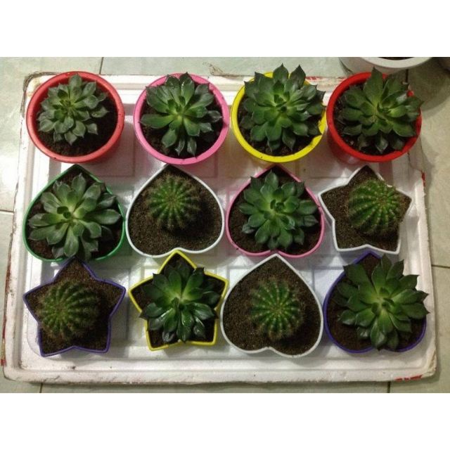 Chậu nhựa nhở nhắn, đáng yêu giúp cho không gian sống thêm sinh động, sắc màuChậu dùng trồng sen đá, xương rồng, ươm cây con