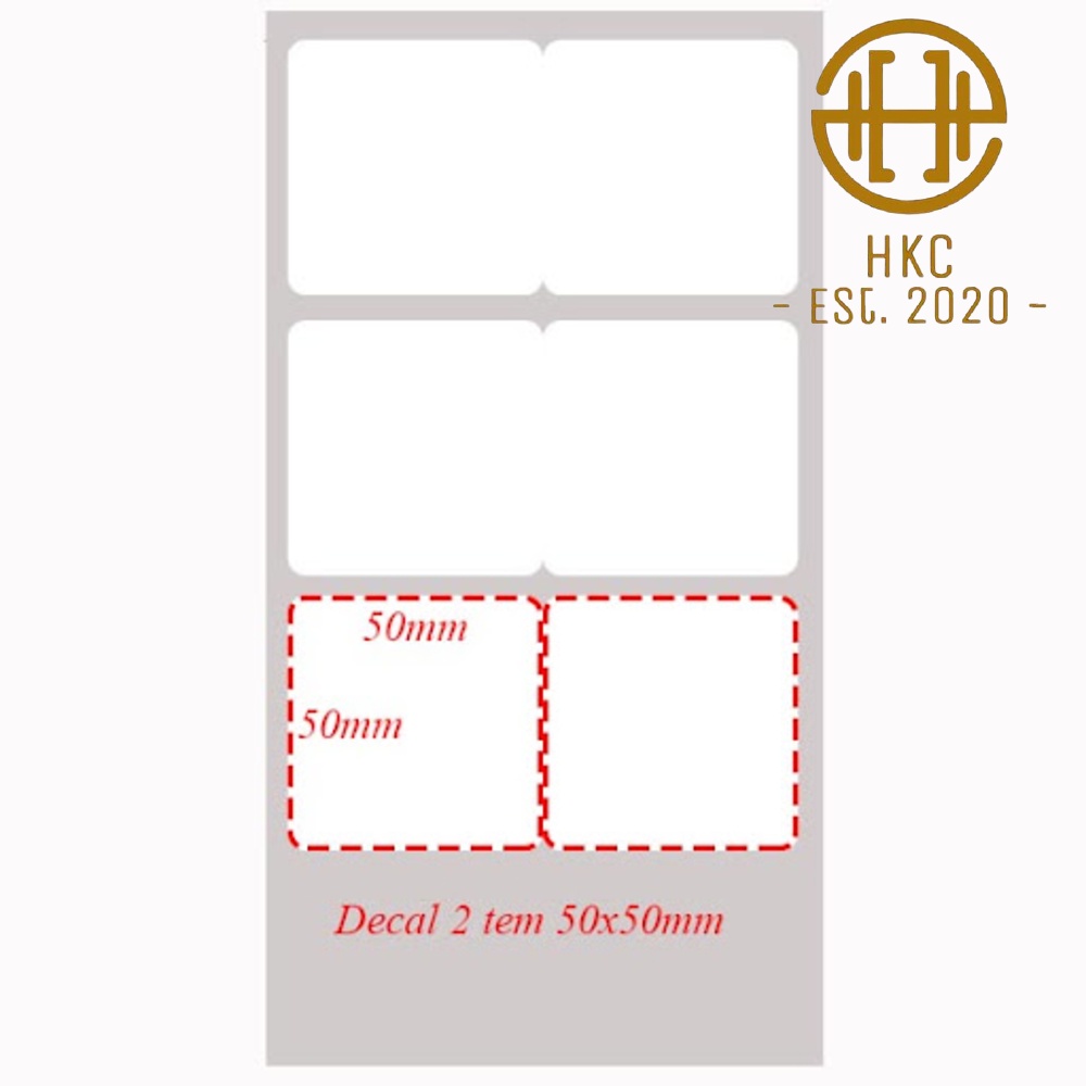 Quy cách: 1 hàng 2 temCỡ tem:50×50(dài x cao)(mm)