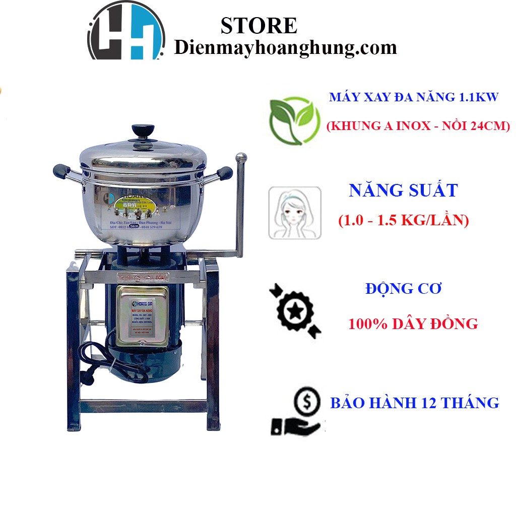 THÔNG TIN SẢN PHẨM:***Thông Số Kỹ Thuật Của Máy xay thịt, cua, tôm, cá, gừng, tỏi, ớt, riềng, xả đa năng công suất 1.1KW Khung A INOX - Nồi 24 cm
