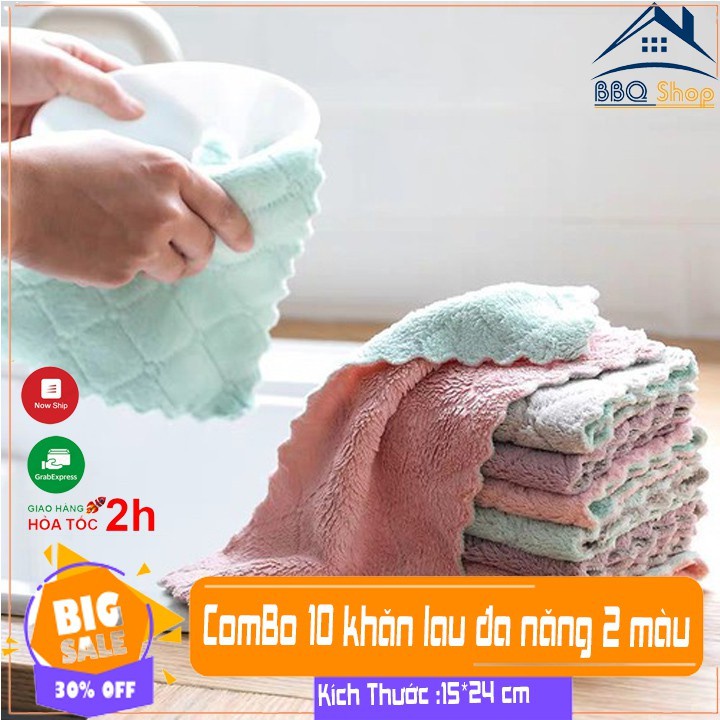 [RẺ VÔ ĐỊCH] COMBO 10 Khăn lau đa năng 2 mặt 2 màu siêu thấm hút lau chùi siêu sạch
