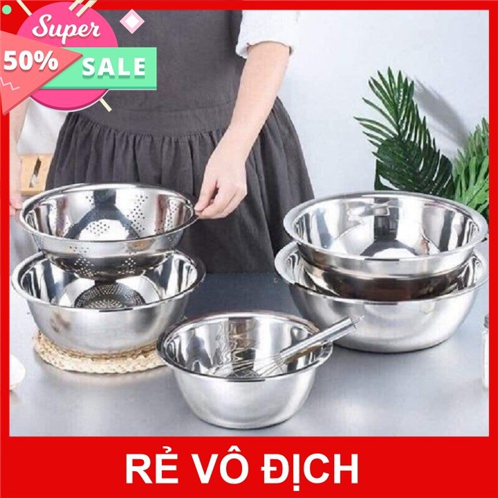 Nhà cửa & Đời sống > Dụng cụ chăm sóc nhà cửa > Chậu, xô & gáo nước || [rẻ vô địch] Combo 5 bộ rổ và chậu inox 304 cao cấpCòn hàng
