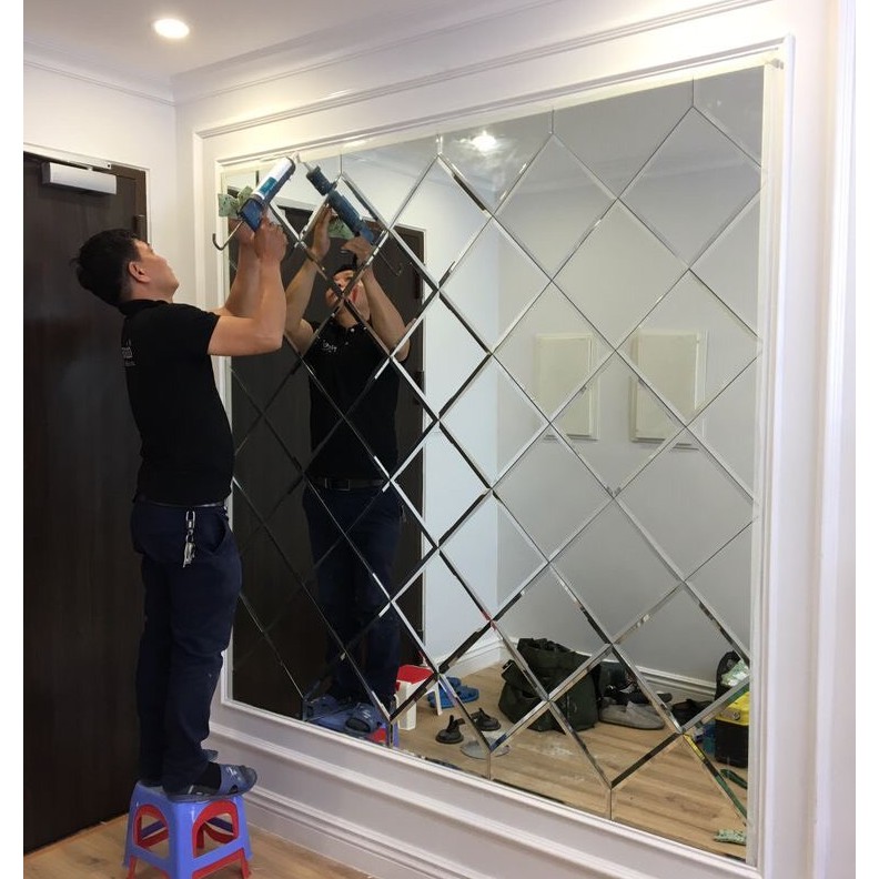 [Rẻ vô địch] Combo 9 tấm gương ghép quả trám gương thủy tinh dán tường gương bị gương trang trí decor