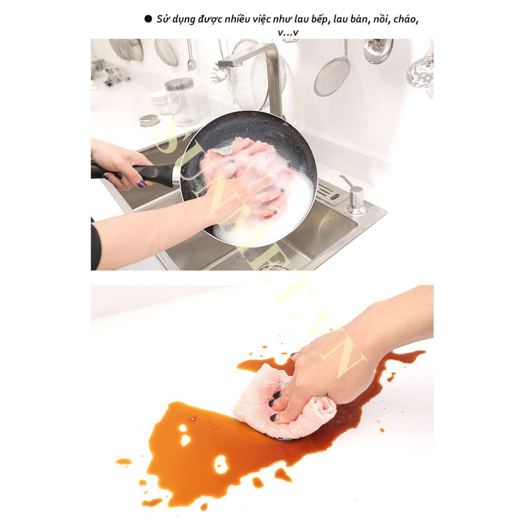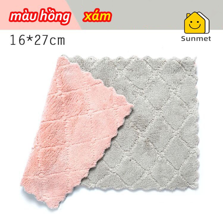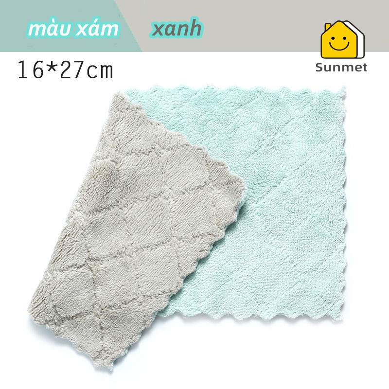 [ Rẻ Vô Địch Deal 1K ] Khăn Lau Bếp, Bát Dĩa, Cốc Chén Thấm Nước Tốt Chống Dính Dầu Mỡ Hai Mặt Hai Màu Loại Lớn
