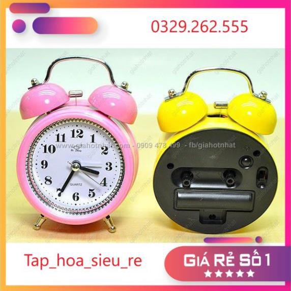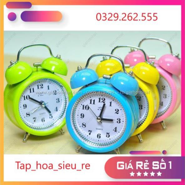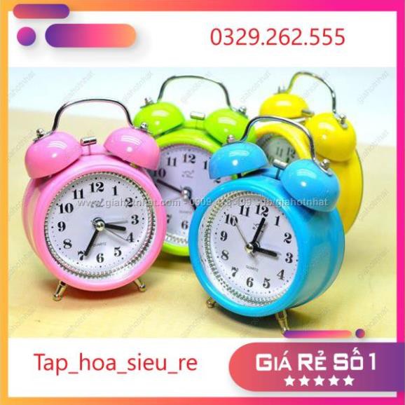 #tap_hoa_sieu_re xin kích chào quý khách!Đồng hồ báo thức luôn là bạn đồng hàng của các bạn học sinh Giúp các bạn đi học đúng giờ Đồng hồ vớ chất liệu sắt mạ sơn tĩnh điện chống gỉ Khi đổ chuông quả chuông đập vào quả sắt hai bên tạo tiếng kêu to Đồng hồ với nhiều mầu sắc phong phú ngộ nghĩnh thích hợp cho học sinh sinh viên và mọi lứa tuổi