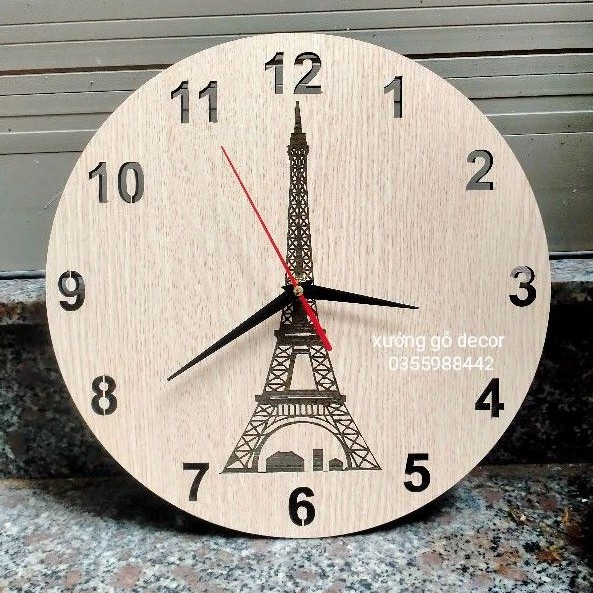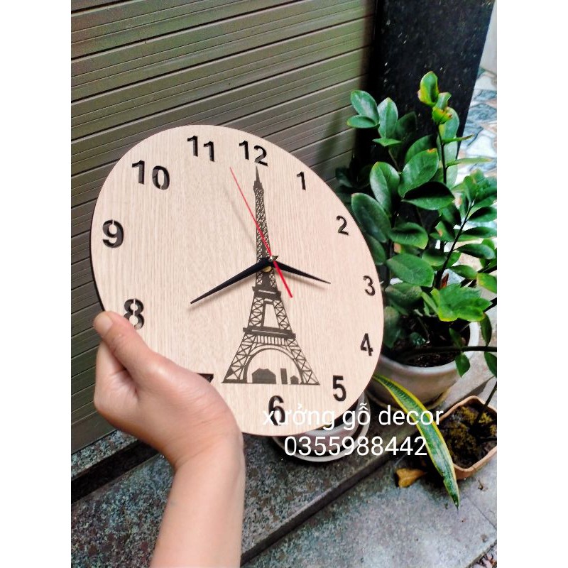 [ Rẻ Vô Địch] Đồng Hồ Treo Tường Bằng Gỗ Độc Đáo Trang Trí nhà Cửa - Paris