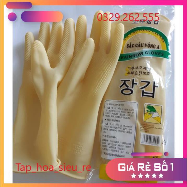 #tap_hoa_sieu_re xin kích chào quý khách!Găng tay cao su SẮC CẦU VỒNG A được sản xuất từ các nguyên liệu cao su thiên nhiên và hóa chất không độc hại nên găng tay mềm, độ co giãn tốt, chống nước và chống hóa chất nhẹ..