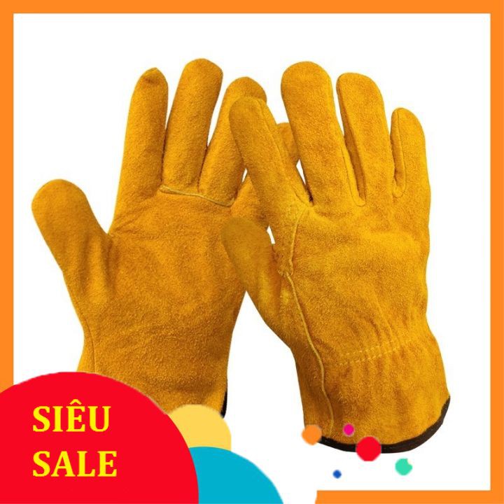 [RẺ VÔ ĐỊCH] Găng tay da bò hàn bảo hộ lao động màu vàng nâu