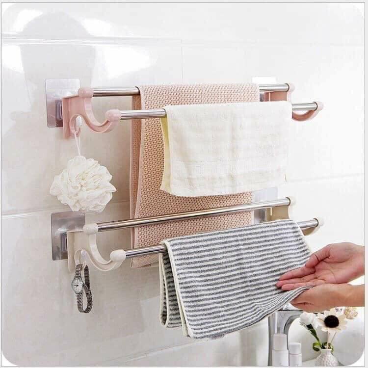 [RẺ VÔ ĐỊCH]giá treo khăn nhà tắm , giá treo đa năng 2 tầng không cần khoan vít dán trực tiếp lên tường