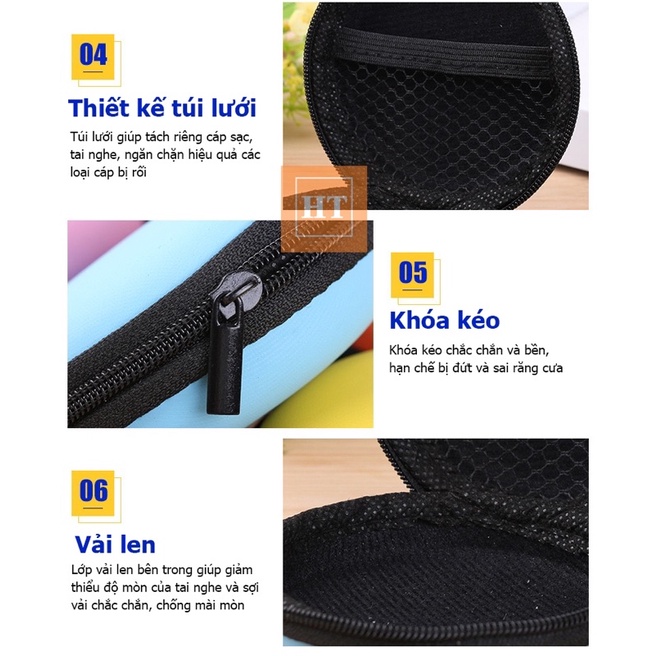 [Rẻ vô địch] Hộp đựng tai nghe, dây cáp sạc, củ sạc có túi lưới bên trong