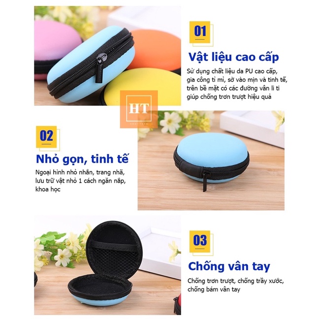 Hộp Đựng Tai Nghe, Dây Cáp Sạc iPhone Tiện Dụng Du Lịch, thiết kế đáng yêu với kiểu dáng nhỏ nhắn, lịch sự giúp bạn bảo quản tai nghe an toàn, gọn gàng. Chất liệu giả da bền đẹp, chắc chắn cho thời gian sử dụng lâu bền. Có 2 kiểu dáng là hộp hình chữ nhật và hộp hình tròn