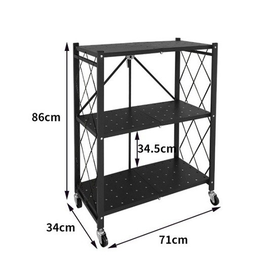 Kệ Để Đồ Nhà Bếp Gấp Gọn Có Bánh Xe đẩy chịu tải trọng nặng, thích hợp sử dụng trong như kệ nhà bếp,kệ nhà tắm nhà tắm, kệ sách sách hay phòng khách. Có thể để nồi cơm, lò vi sóng, bình đun nước, dụng cụ nhà tắm, làm tóc, dụng cụ gia đình, cây cảnh, quần áo, sách..v.v.. Giúp bạn dễ dàng cất gọn tiết kiệm không gian ngôi nhà bạn.Kệ được chế tạo bằng thép carbon chịu lực cao sơn tĩnh điện chống trầy xước không gỉ khối lượng kệ chỉ khoảng 8kg nhưng mỗi tầng có thể chịu lực lên đến 50-60kg, bạn có thể để nồi cơm, lò vi sóng, bình nước, tất cả các hủ gia vị rất gọn, và dụng cụ bếp.