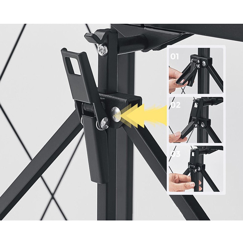Kệ được thiết kế kiểu gấp gọn thông minh khi không sử dụng bạn cất kệ đi nới khác dễ dàng mà không ảnh hưởng đến không gian gia đình bạn.