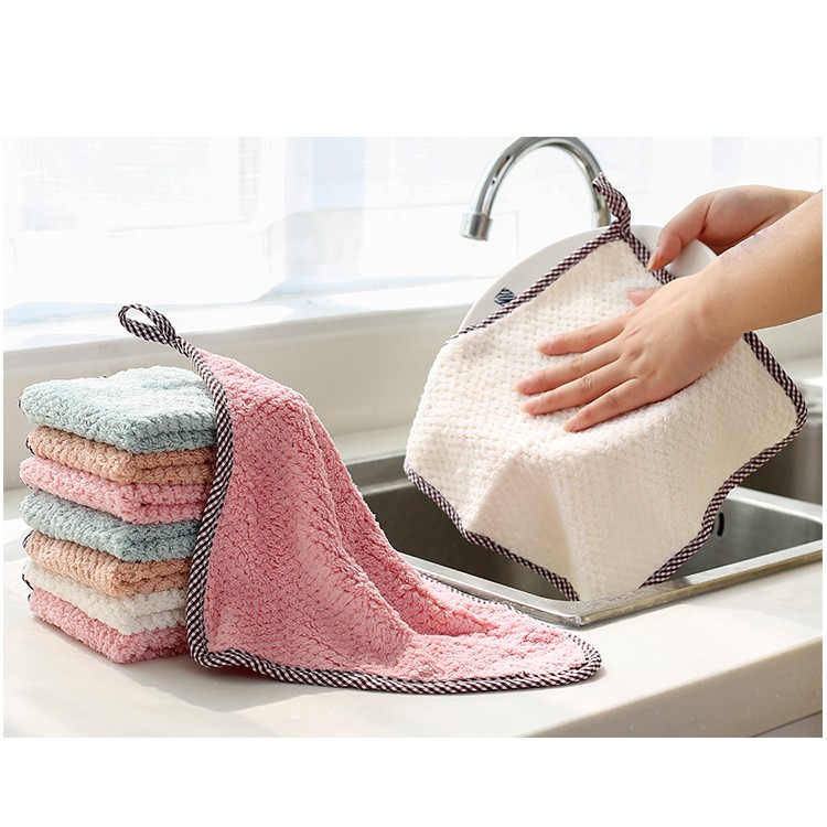Nhà cửa & Đời sống > Dụng cụ chăm sóc nhà cửa > Khăn vệ sinh || [RẺ VÔ ĐỊCH] Khăn lau tay treo tường nhà bếp, bát đĩa, cốc chén thấm nước chống dính dầu mỡ hai mặt loại to 25x27.5cmCòn hàng