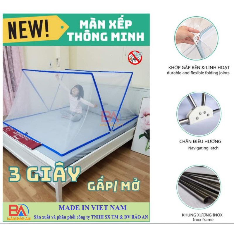Nhà cửa & Đời sống > Chăn ga gối nệm > Mùng/ Màn chống muỗi || [RẺ VÔ ĐỊCH] Màn Xếp Thông Minh Gấp Gọn Khung Inox 304 Cao - Màn Gấp Thông Minh Có CửaCòn hàng