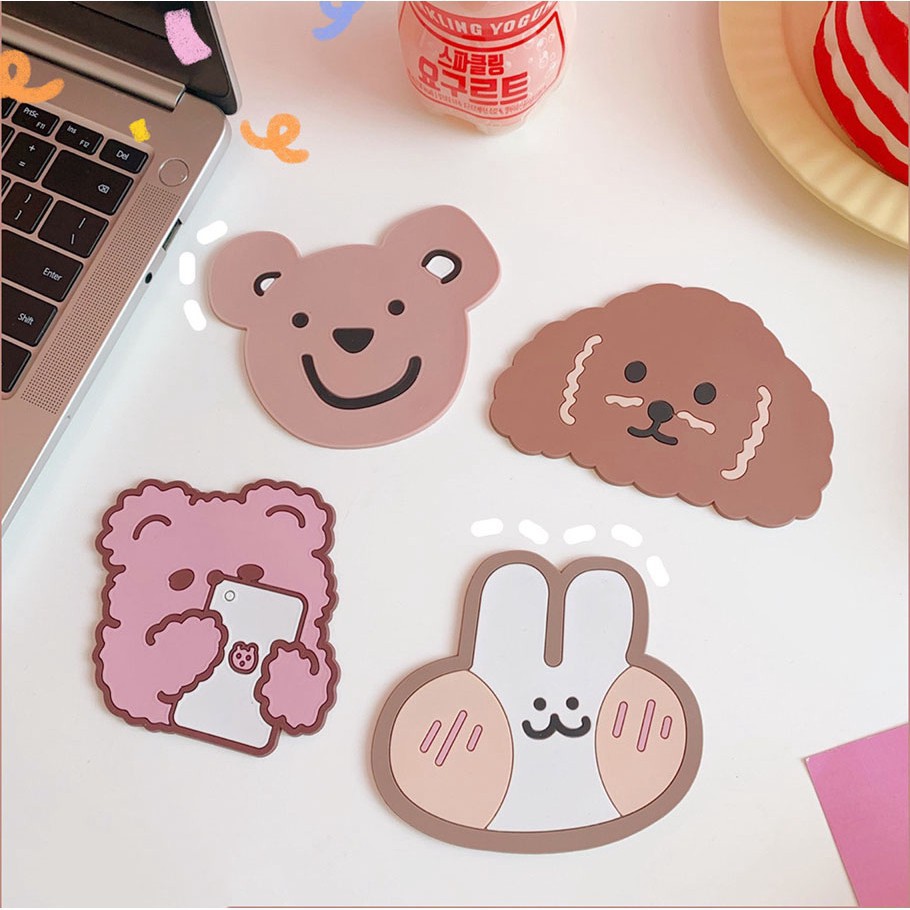 Rẻ Vô Địch Miếng Lót Cốc Silicone Chống Nóng Chống Trượt Để Bàn Hoạt Hình Gấu Thỏ Dễ Thương
