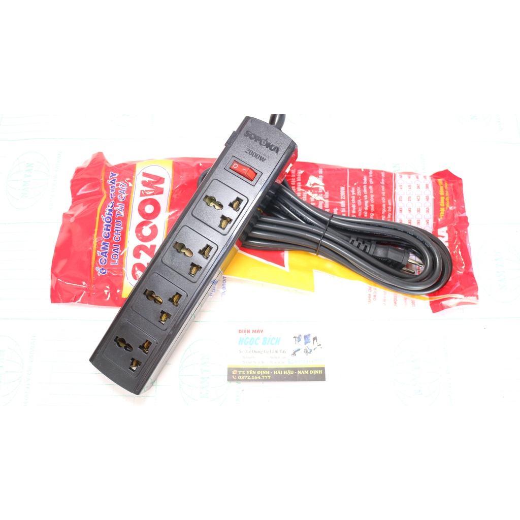 Ổ Cắm Điện SOPOKA 4T3,5 - 6T3,5 Chịu Tải Đến 2200W*Phân loại: 3-6 lỗ cắm, dây 2,5 mét,4,5 mét
