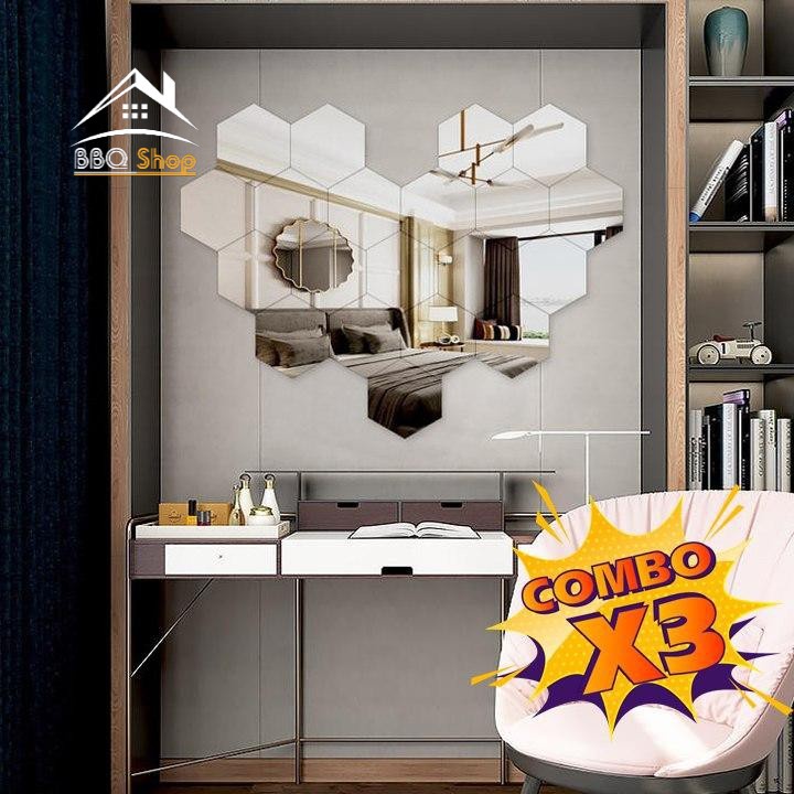 Nhà cửa & Đời sống > Trang trí nhà cửa > Gương || [RẺ VÔ ĐỊCH] SET 3 Gương Dán Tường 3D Hình Lục Giác 4x4Còn hàng