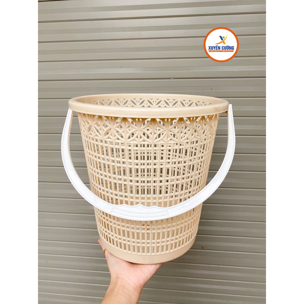 (Rẻ vô địch) Sọt rác nhựa có quai xách hoa đồng tiền 5147 Việt Nhật , feeship, nhựa nâu