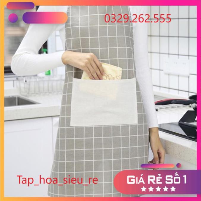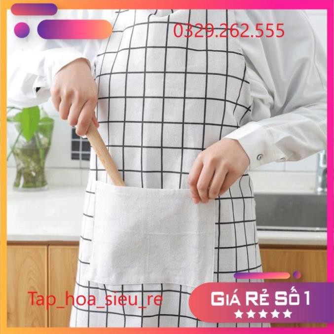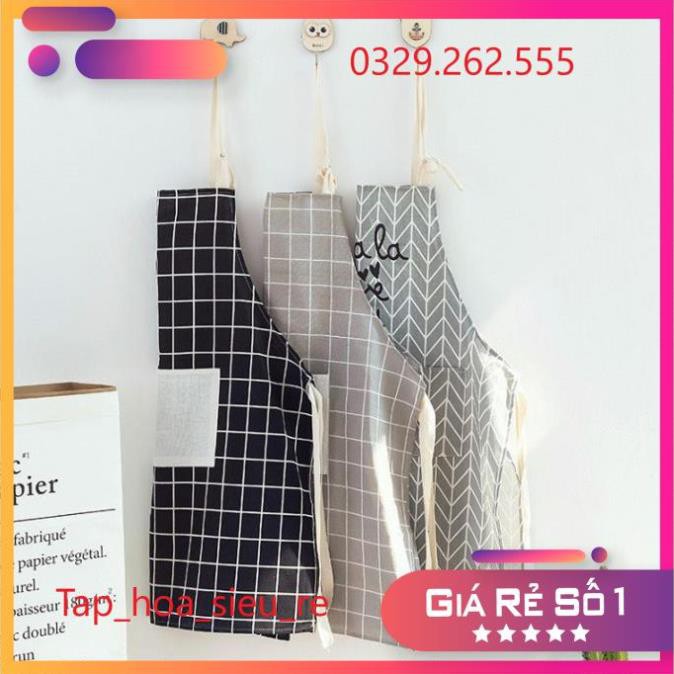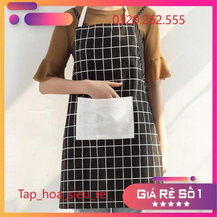 (Rẻ Vô địch) Tạp dề nấu bếp bằng vải họa tiết kẻ caro (Giao mầu ngẫu nhiên)