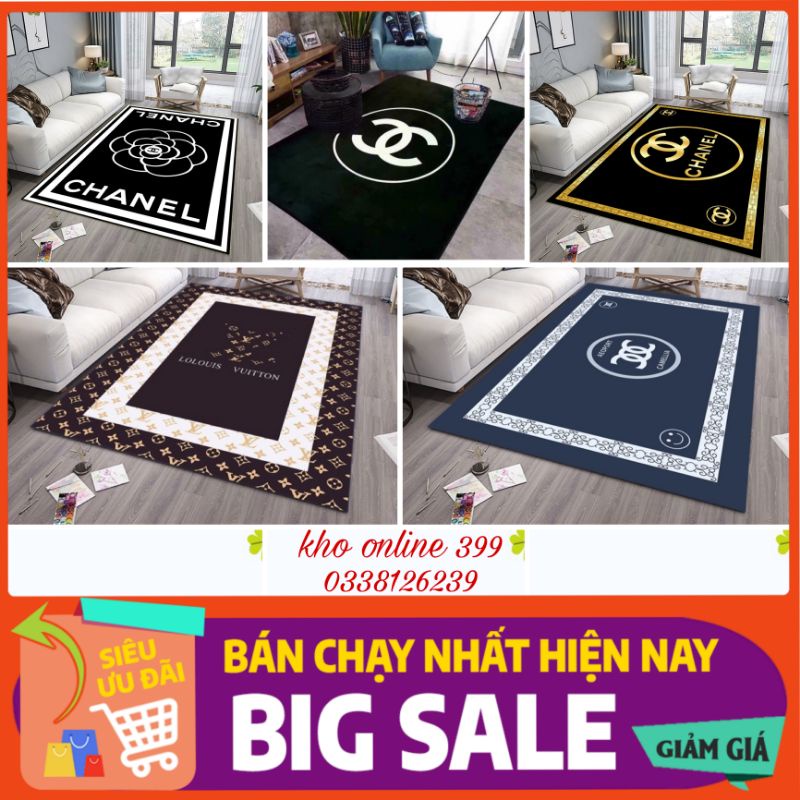 RẺ VÔ ĐỊCH Thảm trải sàn bali 5D mẫu chanel, thảm trải sàn lì mẫu thương hiệu 1m6x2m3 trang trí nhà cửa