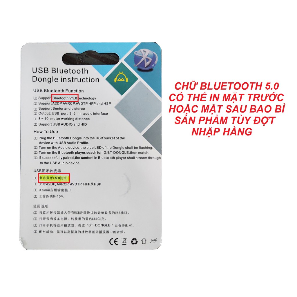 Bluetooth v5.0 EDR (chữ Bluetooth 5.0 có thể in mặt trước hoặc mặt sau bao bì sản phẩm tùy đợt hàng)