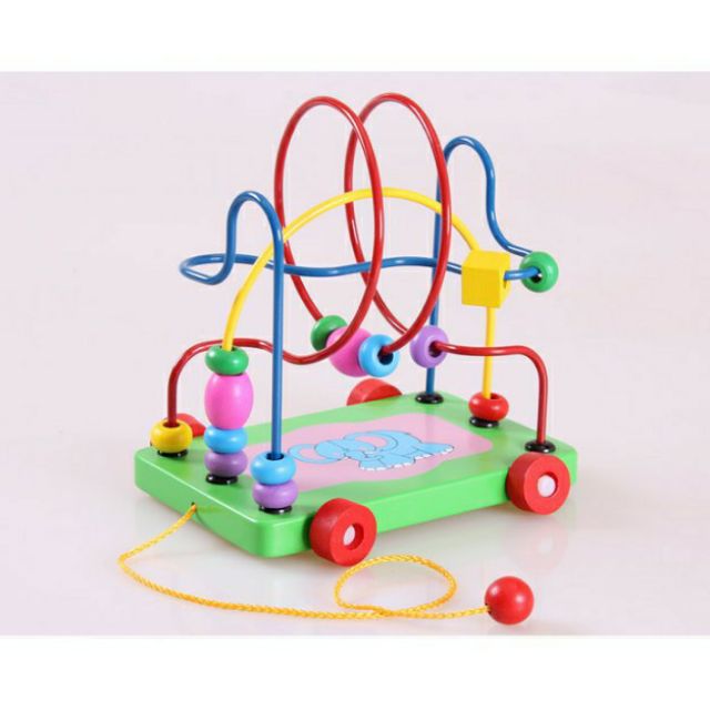 Bộ đồ chơi vừa là chiếc xe gỗ kéo vận động,vừa là món đồ luồn hạt luyện khéo tay cho bé.