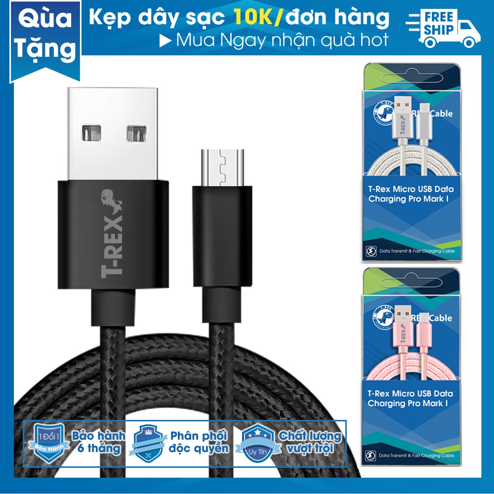 RẺ VÔ ĐỐI Dây Cáp Sạc Micro USB T-rex Pro Mark I ( Dùng Cho Điện Thoại Samsung/Oppo/Xiaomi/Nokia)