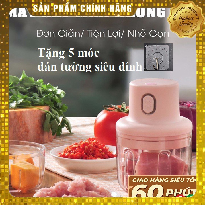 [RẺ VÔ ĐỐI] Máy Xay Mini Sạc Điện, Có Cổng Sạc Usb, Xay Hành, Tỏi, Rau Củ Quả (Tặng 5 móc dán tường siêu dính)