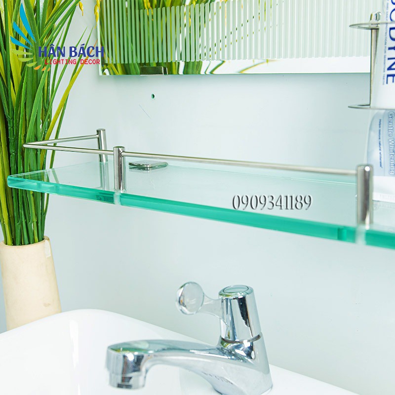 Kệ gương được làm từ 100% inox , trang bị kính cường lực cực kỳ chắc chắn