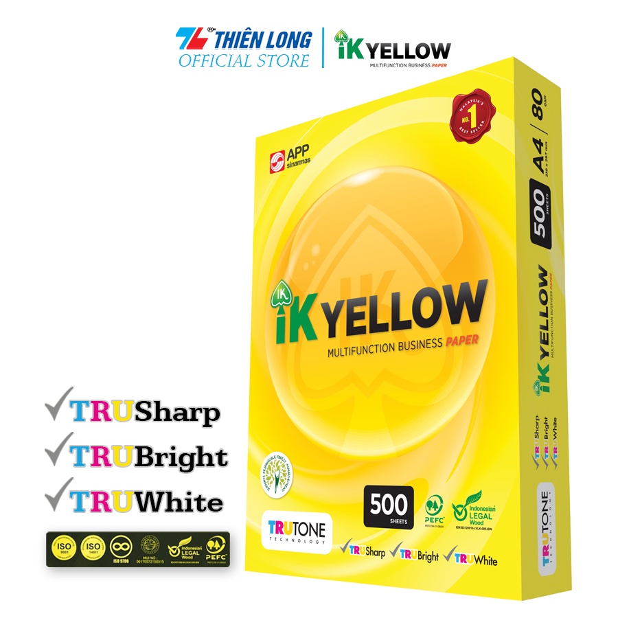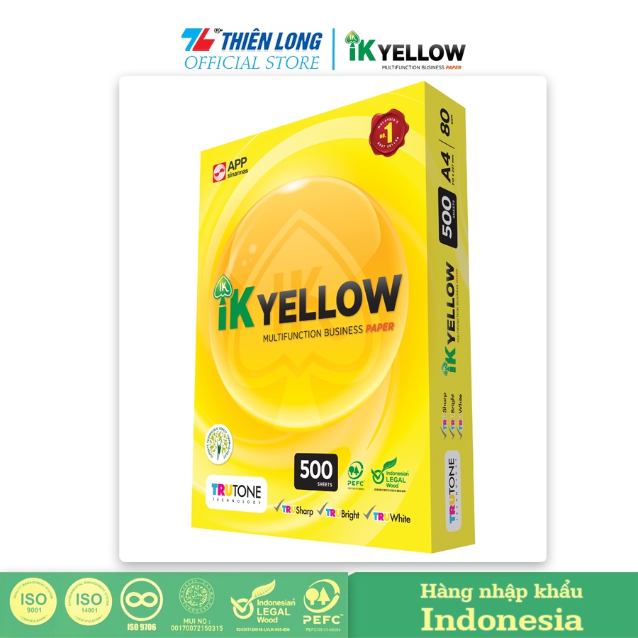 Văn Phòng Phẩm > Sổ & Giấy Các Loại > Giấy In || Ream giấy IK Yellow đa năng A4 80 gsm (500 tờ) - Hàng nhập khẩu IndonesiaCòn hàng