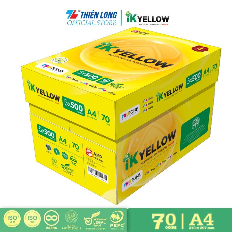 Văn Phòng Phẩm > Sổ & Giấy Các Loại > Giấy In || Ream giấy IK Yellow đa năng A4 70 gsm (500 tờ) - Hàng nhập khẩu IndonesiaCòn hàng
