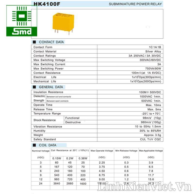 Relay HUIKE hK4100F-DC12V-SHG (3A - 6 chân)BỘ SẢN PHẨM BAO GỒM