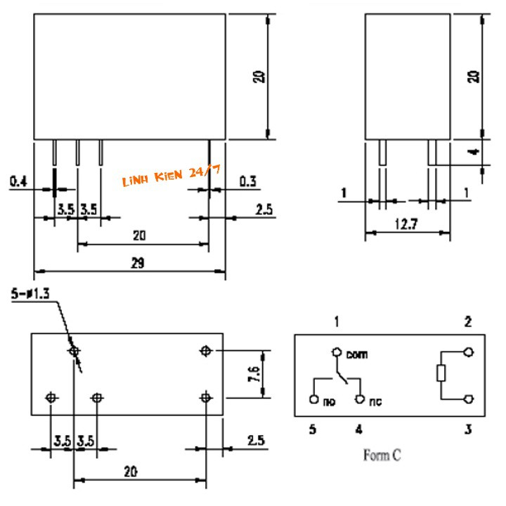- Kich thước: 29x12.7x20mm