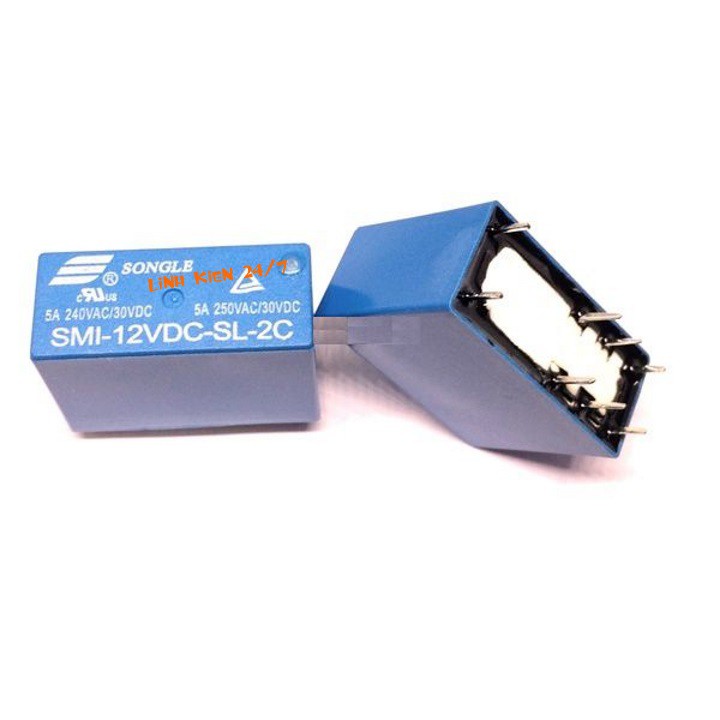 - Relay Songle 8 chân SMI-12VDC-SL-2C 12V 5A là linh kiện để thay thế hoặc sửa chữa cho thiết bị điện tử mà được những người làm nghề kỹ thuật hay sửa chữa thiết bị điện tử rất ưa chuộng.